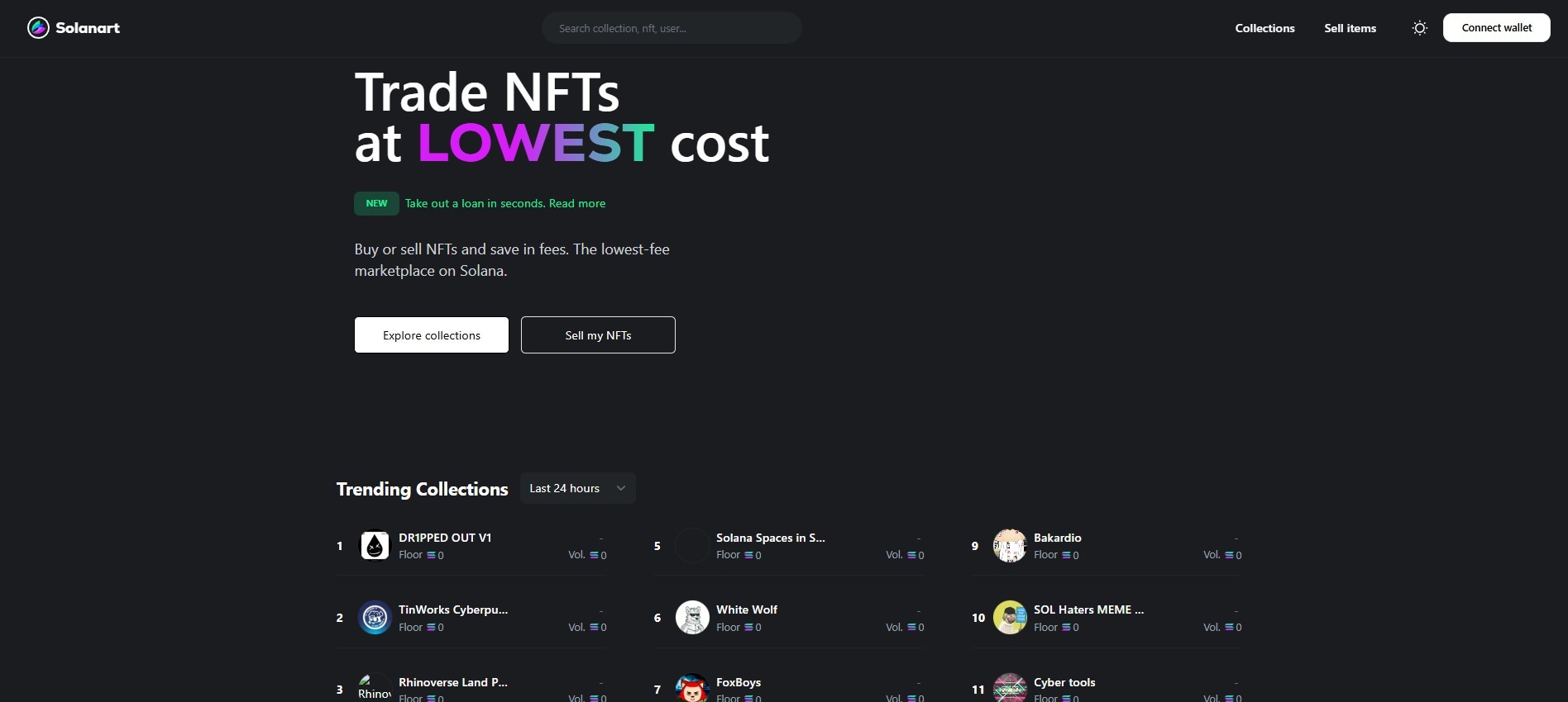 Solanart | Solana | Art, PFP projects | 0% trading fee | Solana based NFT collections |